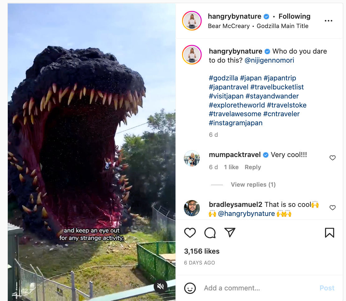 Fly into the belly of a “life-size” Godzilla on Awaji Land, Japan