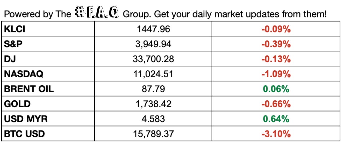 Guangzhou, home to almost 19 mil people, announced a 5-day lockdown in its largest district of Baiyun while its capital Beijing has moved to online classes as Covid-19 cases are flaring up across the country. Beijing reported its first Covid-19-related death in over six months. Believe it or not - China’s official Covid-19 death toll is fewer than 5,300. Asian stock market and oil prices slid, given further economic disruption as China remains adamant about its zero Covid policy.
